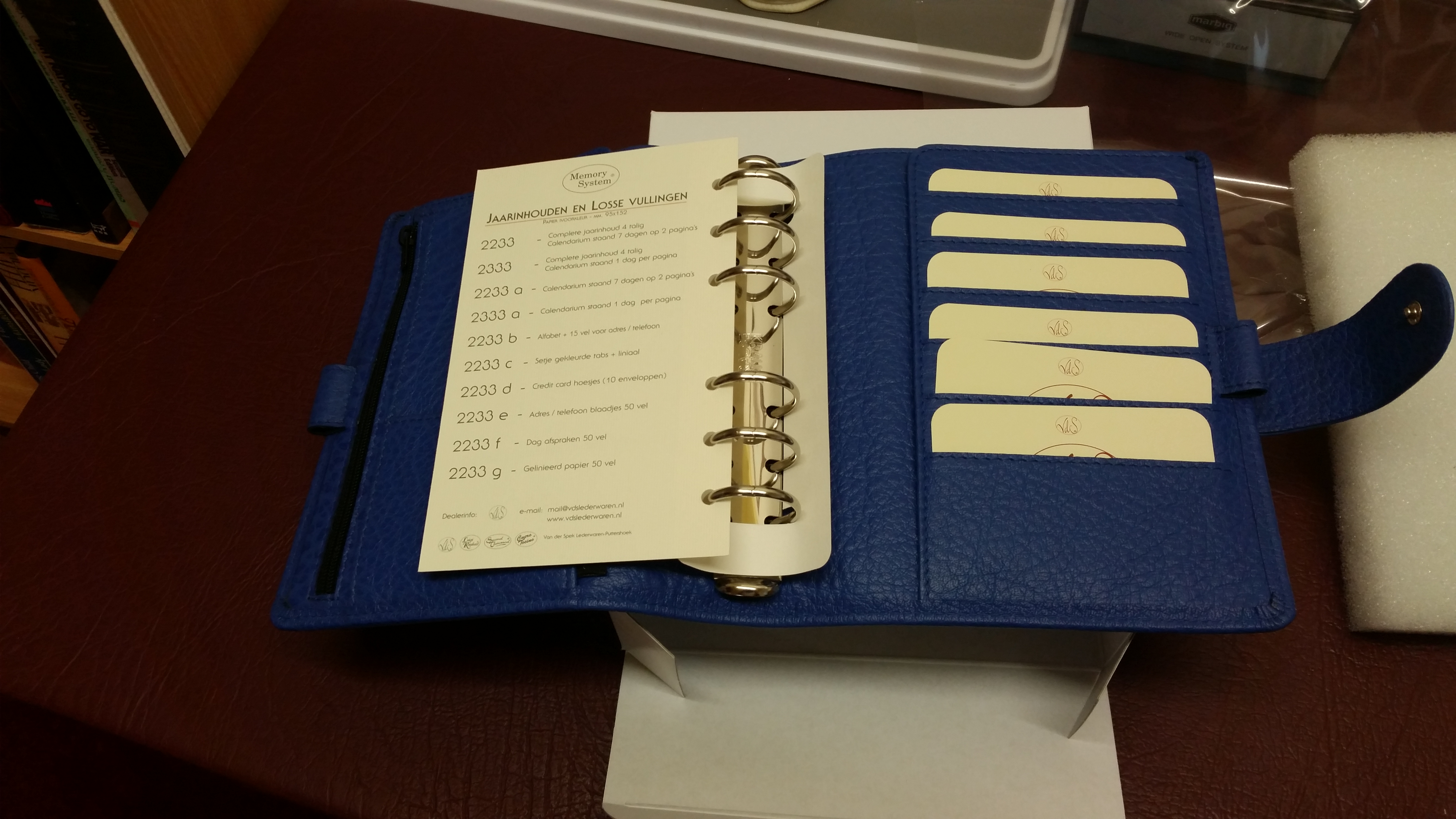 A couple of posts ago I talked about my use of Ringed Planners – Filofax and recently Van der Speck (VDS). I also mentioned that I had bought a new VDS but I don’t think I put any pictures with that post. It is Bleu de France and it the very first coloured binder/planner I have ever bought. Now that the year is almost over I have activated my new Planner/Binder with 2017 inserts and it is already in use, although I will be glad when the year ends in a few days and I can stop carrying two planners/binders around with me as I have been for the last week. I was told that the French Blue was the same colour as the French Flag however, I thought the French Flag was a bit darker, but I could be wrong.