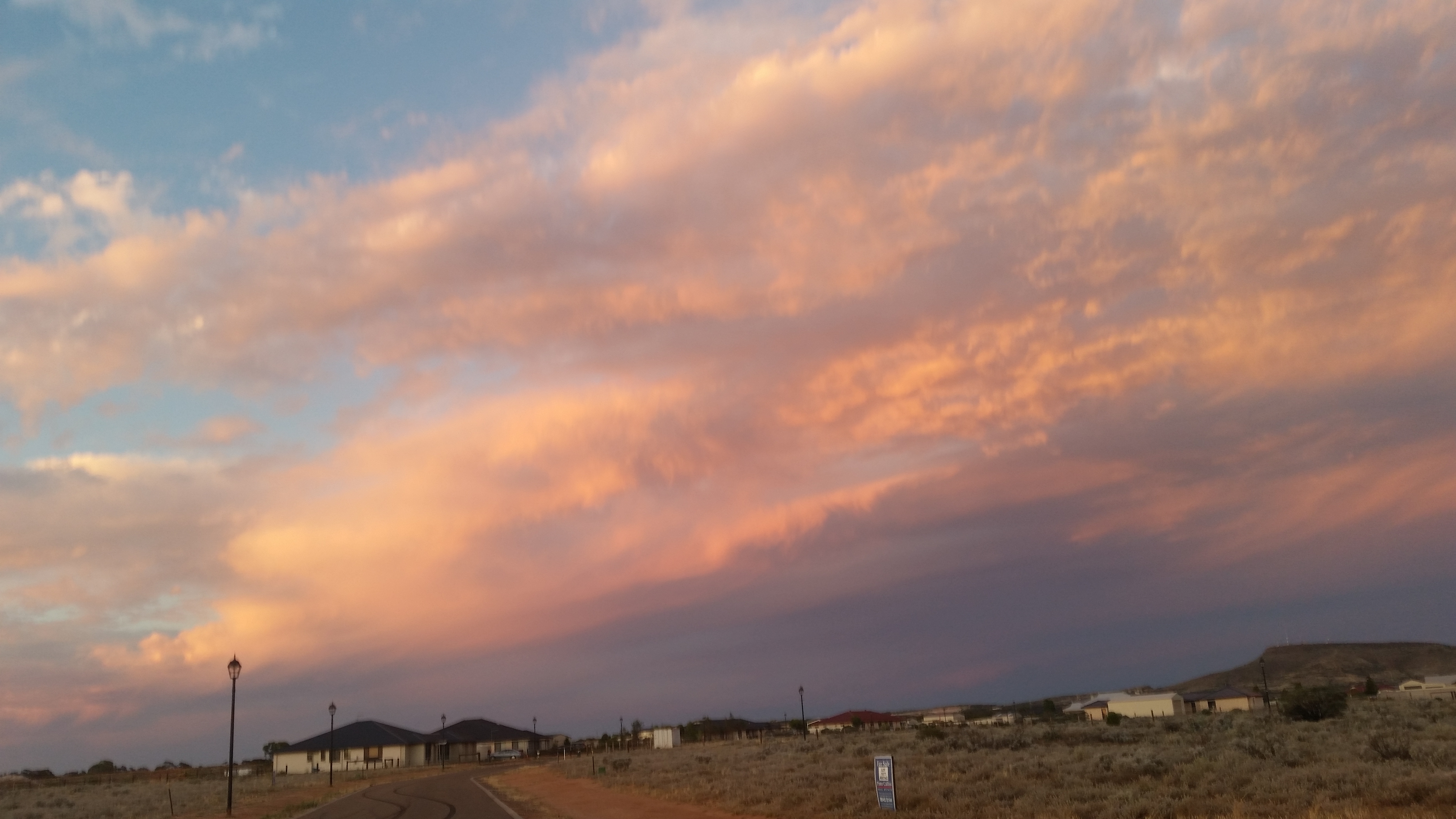 The storm went on for the night and into the early hours of the morning. The WaWa slept as did Benji – Yogi not so good, so I ended up staying awake looking after the dogs – well at least my two – until I finally fell asleep myself. This morning I was up and dressed and took Benji and Yogi out for a walk. It was quite strange – everything was as calm and there wasn’t a sound to be heard. Normally I hear birds and in the distance a cock crowing, but not this morning for some odd reason. What I did hear – much to my annoyance – was flies buzzing around my head and face. One thing the tourist guides never tell you about outback Australia when they wax lyrical about the rugged beauty of the ancient landscape, is the three things common to outback Australia – heat, dust and flies – lots of flies. I took Benji out at 5:30 am because it was quite, peaceful and dark with dark meaning no flies. Now as we move further and further into summer it is getting lighter and so at 5:40 I have a baseball cap that is more of a fly swat than a hat. I may have to go back to the fly -protection hat netting that I sometimes use when I took Benji down to the Wetlands. I hardly ever go there (the Wetlands) now as it continues to be upgraded and become more and more popular with walkers, joggers, mothers with prams and dog walkers – which is good for the wetlands and its acceptance as a recreation area. I was happy to see that there was no structural damage caused by the storm – at least not in this area – not even a tree down. There was also very little water around – some on the roadway and some in gardens, but not nearly as much as I expected. However, we do have very good stormwater drains here that can clear any flooding water quickly. However, at the very far end of the area is the runoff area where the storm drains empty out – that’s not so good and it is fairly close to overflowing. I think they must have constructed part of the runoff area, run out of money and then forgot about it. Another night last night and we could have problems