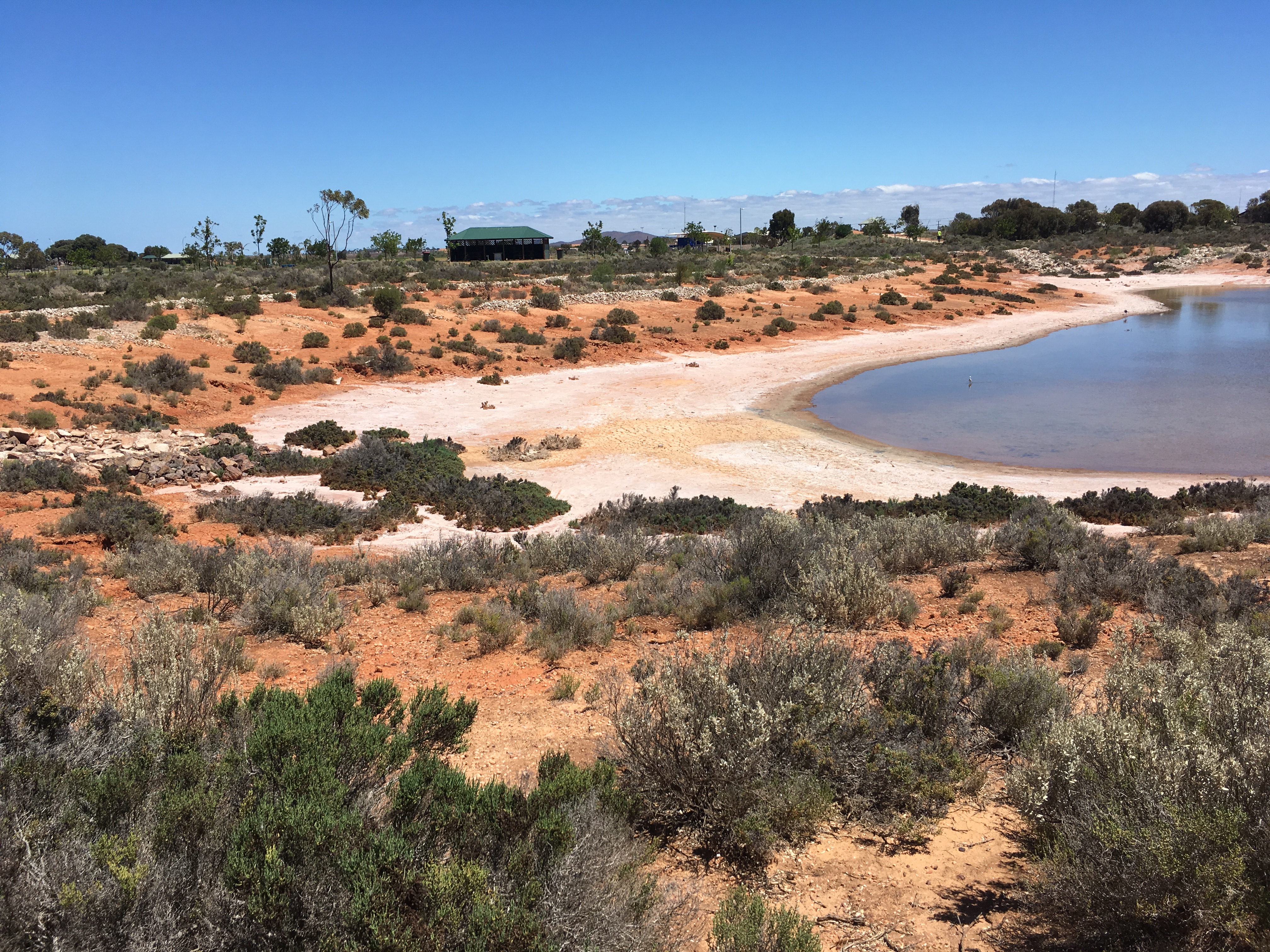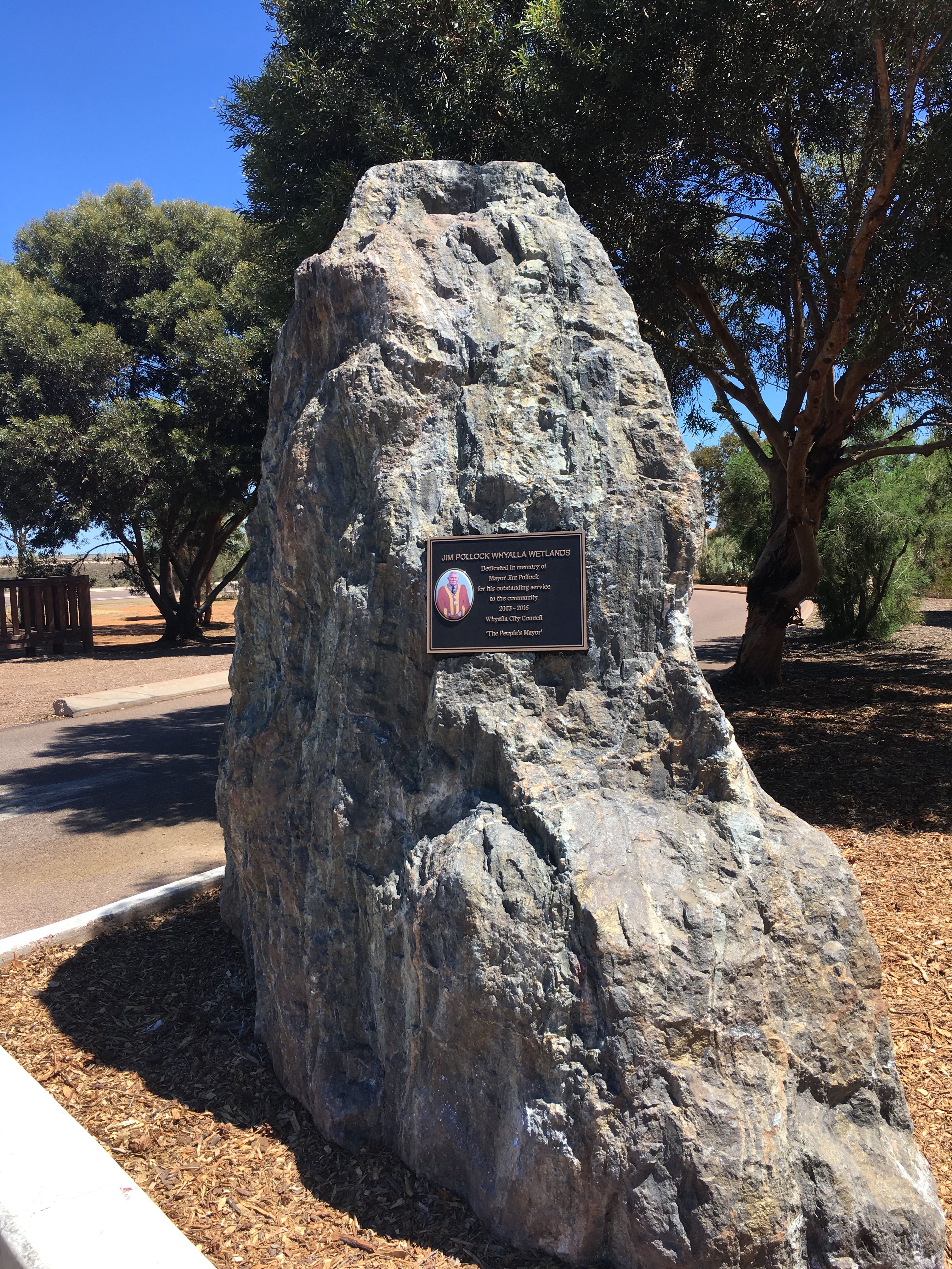 to time, but this wasn’t that time. Certainly it has been a little while since I have taken the dogs down to the Wetlands – not in the extreme heat that we had. I was amazed at the loss of water from the area and it showed. I was also disappointed that the black swans had gone, but not only that, most of the bird life had gone. There were, generally, a lot of ducks and I have taken photographs of them in the past, but there was none. All that was there was seagulls. I did photograph the new memorial to Jim Pollock, the Mayor who died a year or so ago. He was a mayor – he was always well turned out, well liked and respected be everyone he look good and inspired confidence. His death was sudden and he is well missed. I also noticed that there was an area under construction a there had been talk of building a cafe at the Wetland to make the area more family and tourist friendly. This could be it, but there was nothing to indicate what it is.
