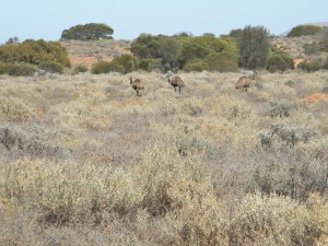 the Flinders Ranges in the distance. Looking back towards the Gardens and the Shop area is quite interesting. Way beyond the hills in the distance is part of the way home. and between where I am standing and where I am going there is nothing – no houses nor people – mind you, there’s no water either. Coming back down from the escarpment to the carpark I had a chat with some visitors from Germany. Driving back to the main road I stopped and pulled off road as best as I could so that I could get out and photograph a family of emu. In the early paragraph of this post I mentioned the problems with allowing dogs in the area – even on leash – because some people would believe the rules don’t apply to them – this was brought home to me as I was photographing the Emu. For obvious reasons, the speed limit in and around the area is 40KPH with restrictions that the wildlife has right of way. As I was parked a white sedan came from the opposite direction and passed me at about 60+, despite the fact that there were Emu in the area – rules didn’t apply to him.
