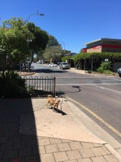 reason for the journey was that Annabell needed to go to the bank and sort some things out. Unfortunately, the nearest branch to us is 80 klms away in the Port. Whilst she attended to what she needed to do in the bank, I took Benji for a walk around the main street. Yes it was a bit warm but not too bad and he did his bit for the environment by watering a few trees. Annabell wanted to transfer money to Scotland but she had been having difficulty on line, so we came here to sort it out. Back at the car Benji and I had a drink of cold water and then shared a Hot Dog – not my first choice but easy to get fairly quickly. Annabell came back and we headed off to Better Homes and the garden center. I was able to get some plants to replace the plants burned. I actually wanted to go to the Arid Lands B.G. but with Benji that was not possible. The drive home was quiet and we did take note that the long promised passing lanes on the Eyre Highway are finally under construction.