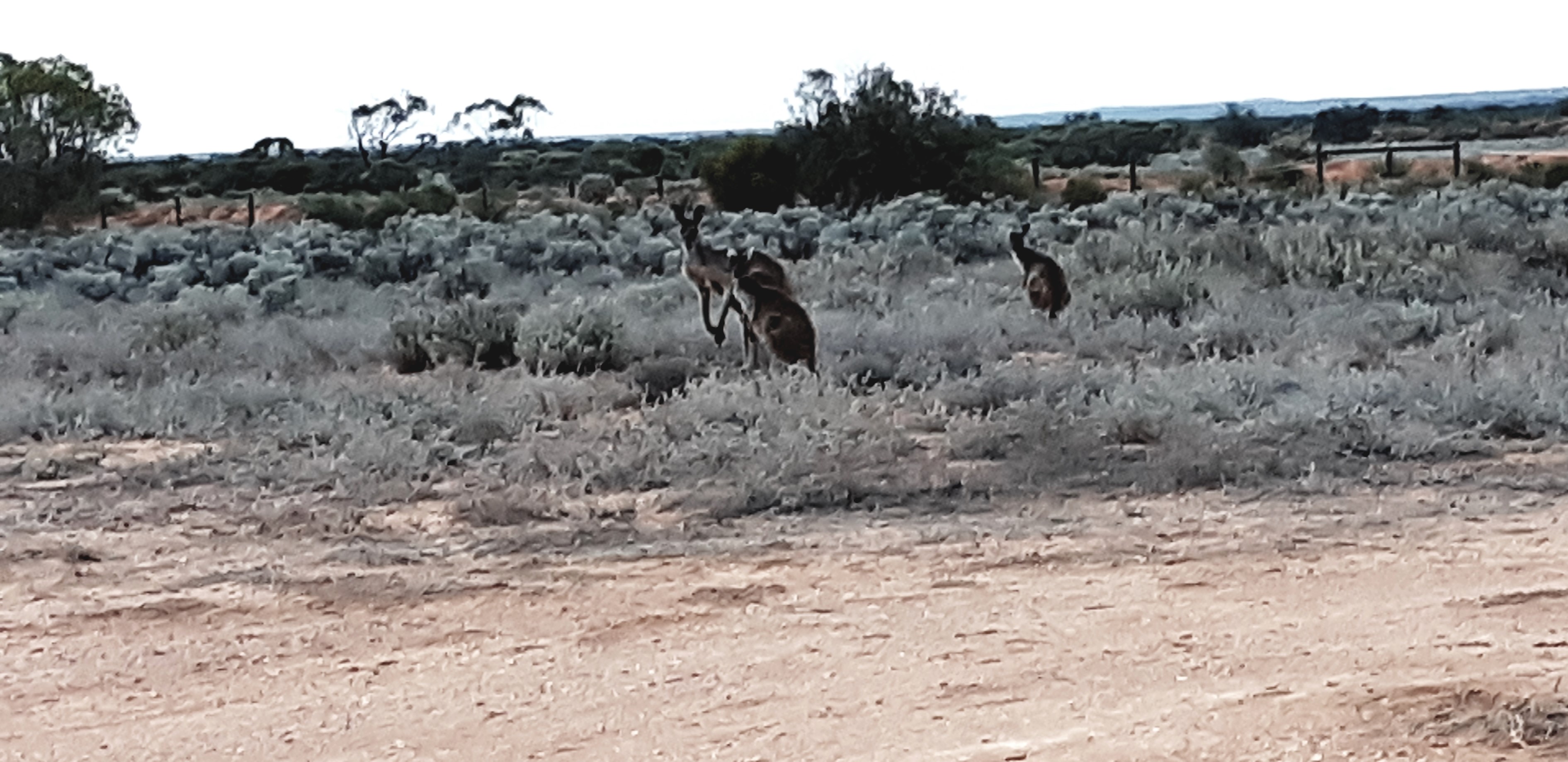 have been in the mid 30c. I took Benji out for a walk at 6am before it started to heat up and the ground was still cold. I was surprised to see Kangaroos around since I assumed the rain for much of the week just gone, would have been enough to keep them happy. They only really come near the town when there is little to drink and not much feed out in the bush. Not the best of photographs but they were a bit back off the road and trying to hold a dog, hold the smartphone steady and take a picture, wasn’t all that easy. Tomorrow it is supposed to be overcast with the possibility of rain and a bit of a storm – at least that’s what the state forecast was. The local news was not quite so certain in regard to the weather, so it might rain, but then, it might not. —- It did..
