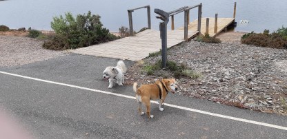 Sam and Ina ( Dougal’s people) are still in Adelaide. Sam,as I mentioned before, was quite ill and is still having a blood loss so it is unlikely we will see them back for a little while yet. Ina did telephone during the week to let us know what is happening. Dougal has now been with us for five weeks. It doesn’t seem like that and as things are we will have him for a little while longer. That’s ok – he’s fine – needs a haircut, but otherwise, fine. The weather has been hot to very hot with a fire ban declared throughout the area for the next few days- Tuesday 36c / Wednesday 41c / Thursday (today) 45c / Friday 46c and then down to the mid 30s for next week. Dogs out very early in the morning and late at night – if it’s not too hot during the day and by late I mean after 8pm. There have been lots of Kangaroos around the place and this morning was no exception – all of them looking for water and food. I have a bucket of water out in the garden and I top it up every few days. I also make sure the bird