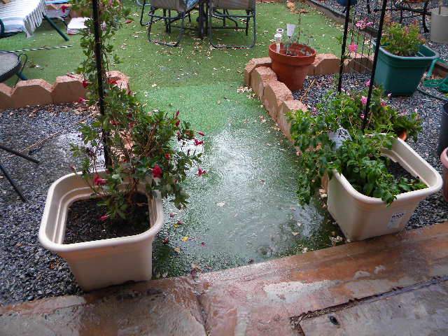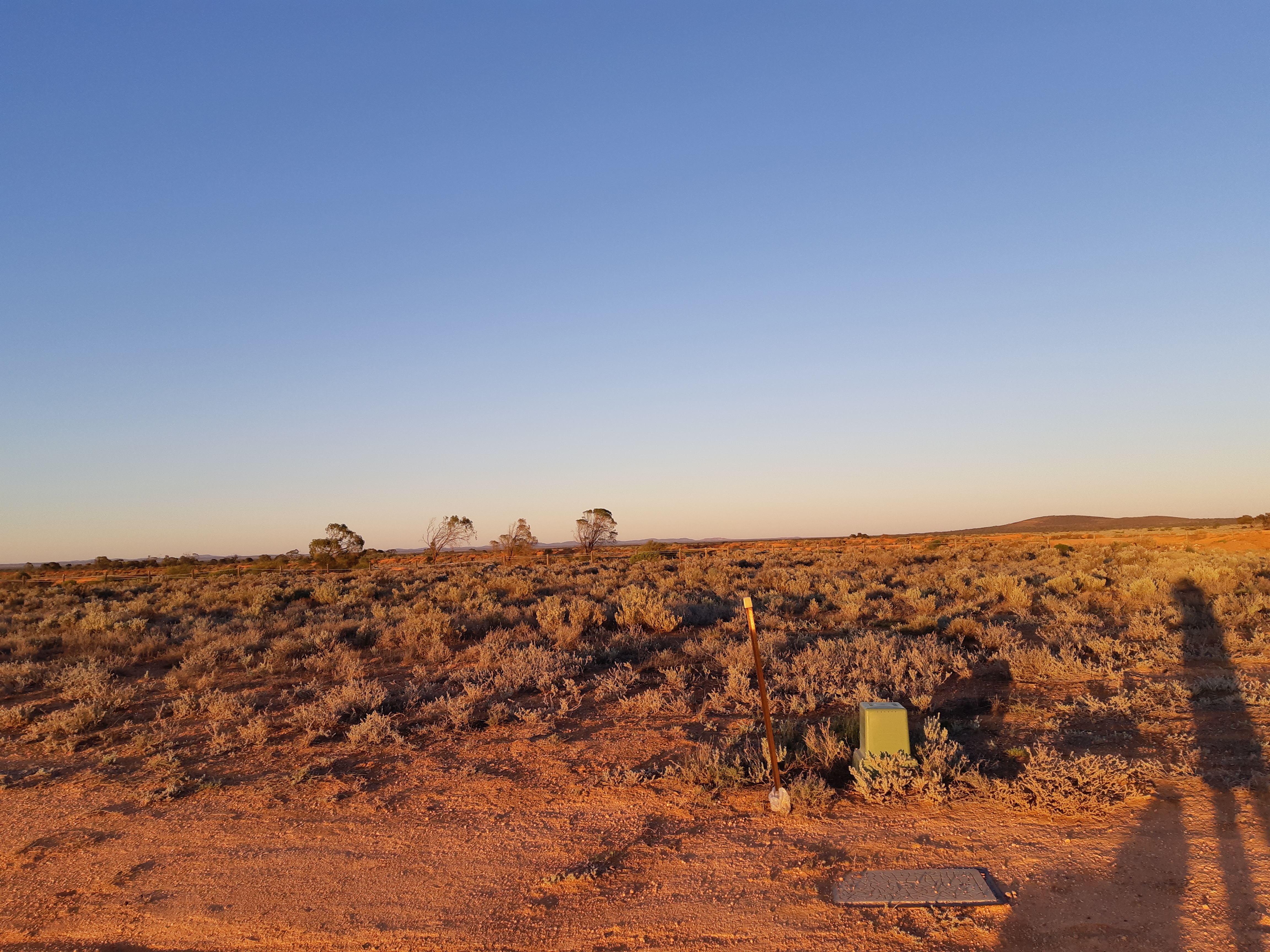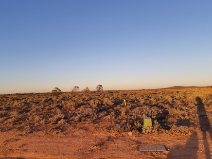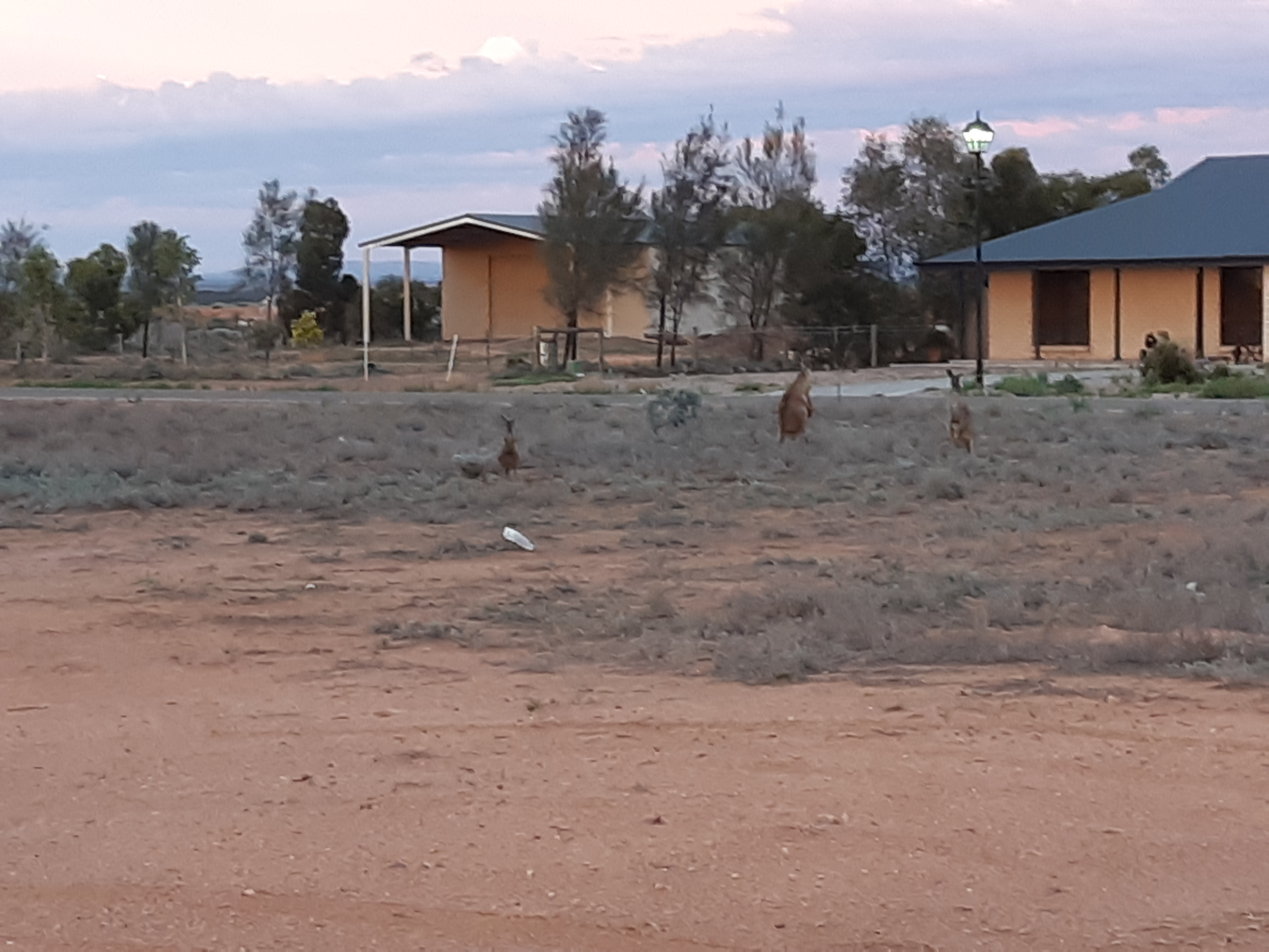 bath also has water in it – although not today – today I was the “plant” that was watered as the fixture of the hose blew apart and I was soaked. Fortunately it was at the end of the walk. For those who have not seen it – this is my “back Yard”. Thousands of square miles of nothingness but wild animals and saltbush. The photograph is looking West – north of us are salt lakes and desert. I want to drive up there sometime but at the moment it is waaaay too hot.