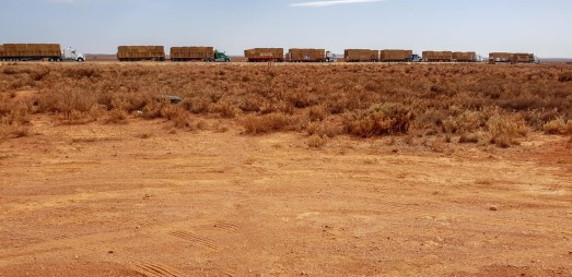 One of the incredible things that happen here are the Hay Convoys. Much of New South Wales and most of Queensland are in drought. Thus farmers cannot feed their animals. The farmers in Western Australia donated about 3500 bales of Hay – enough to fill 50 trucks and these are being trucked from Western Australia to New South Wales. The convoy was passing through South Australia on the Inter-State about 30 miles away. A number of people were going out to the Iron Knob truck stop to greet the trucks and the truckers and wave them on . I was invited to go with them and I really wanted to, but I had an unplanned medical appointment for Annabell and that was at the same time as the trucks were going through. I did ask my friend Angel to take lots of photographs – which she did