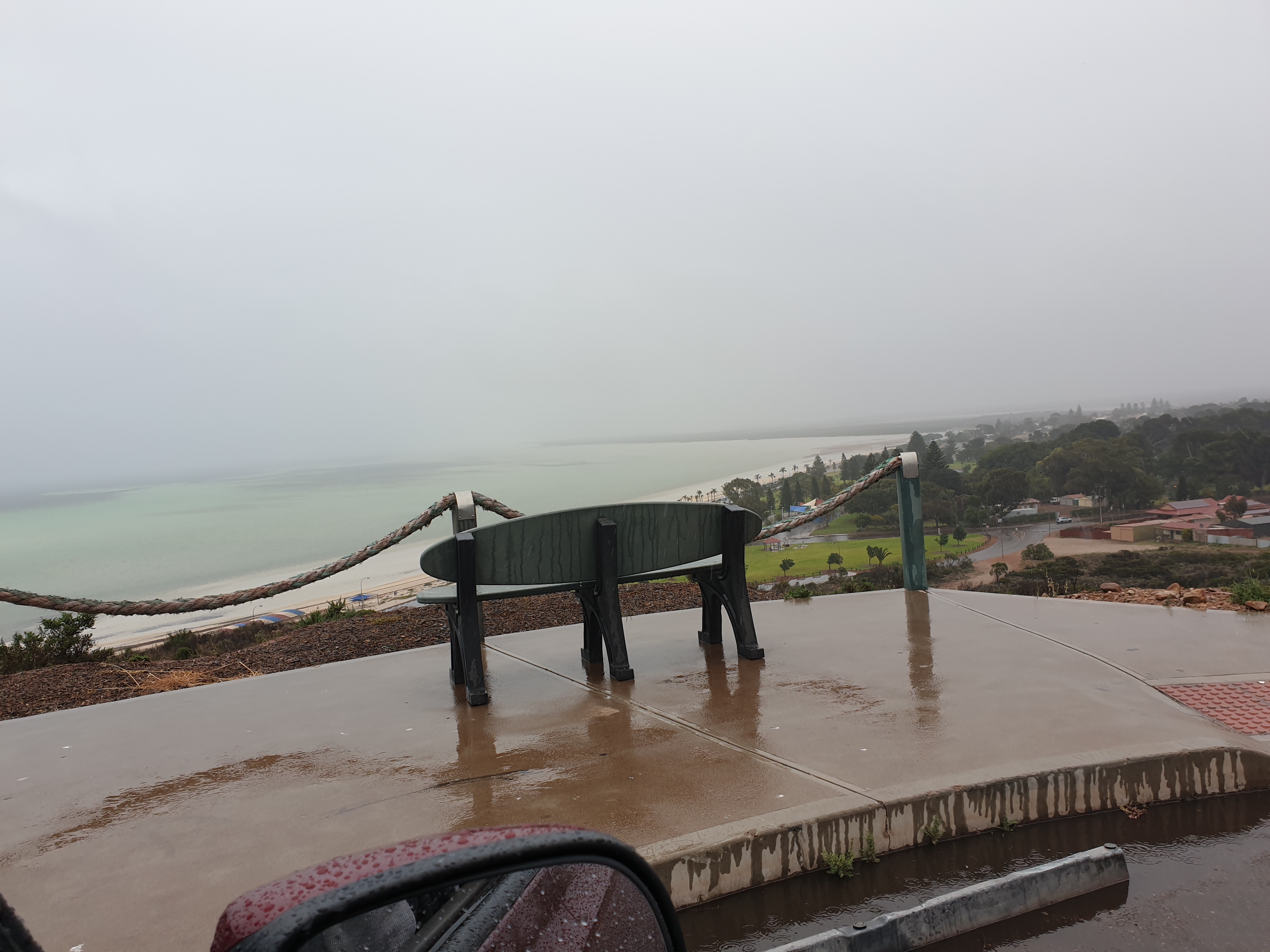 After the medical alert and the dust storms, we had two days of rain. Still, at least it washed the dust away. The pit at the end of the street is completely full. Benji and I took a walk down there a short while ago when it stopped raining for a bit. More rain is forecast for tomorrow. We were lucky in that our fundraising event was rain free but it