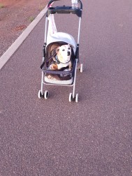 This morning, however, we did go out. We completed about three quarters of the outward section before the limp and the paw up. I merely lifted him and placed him in the stroller and we