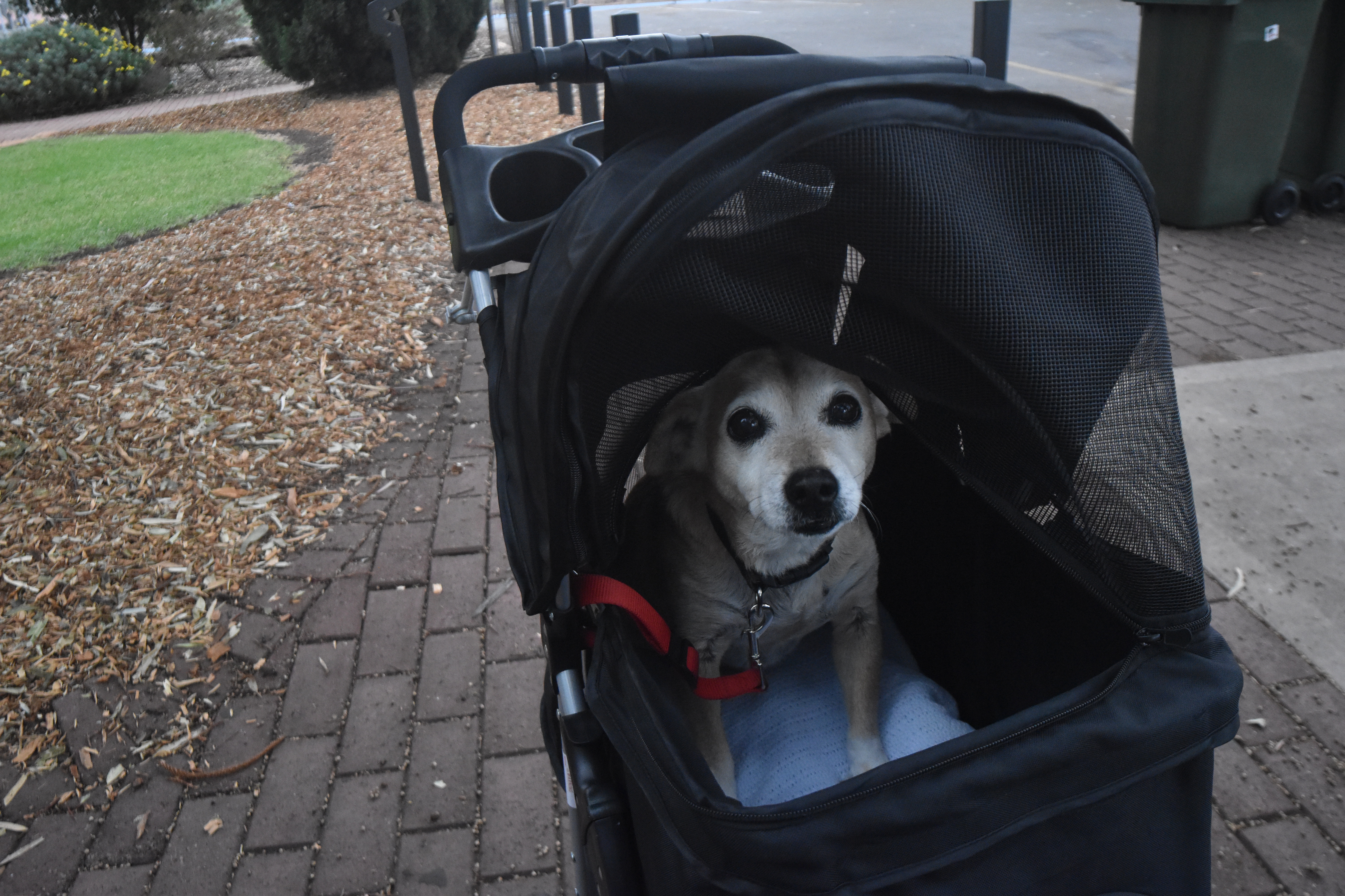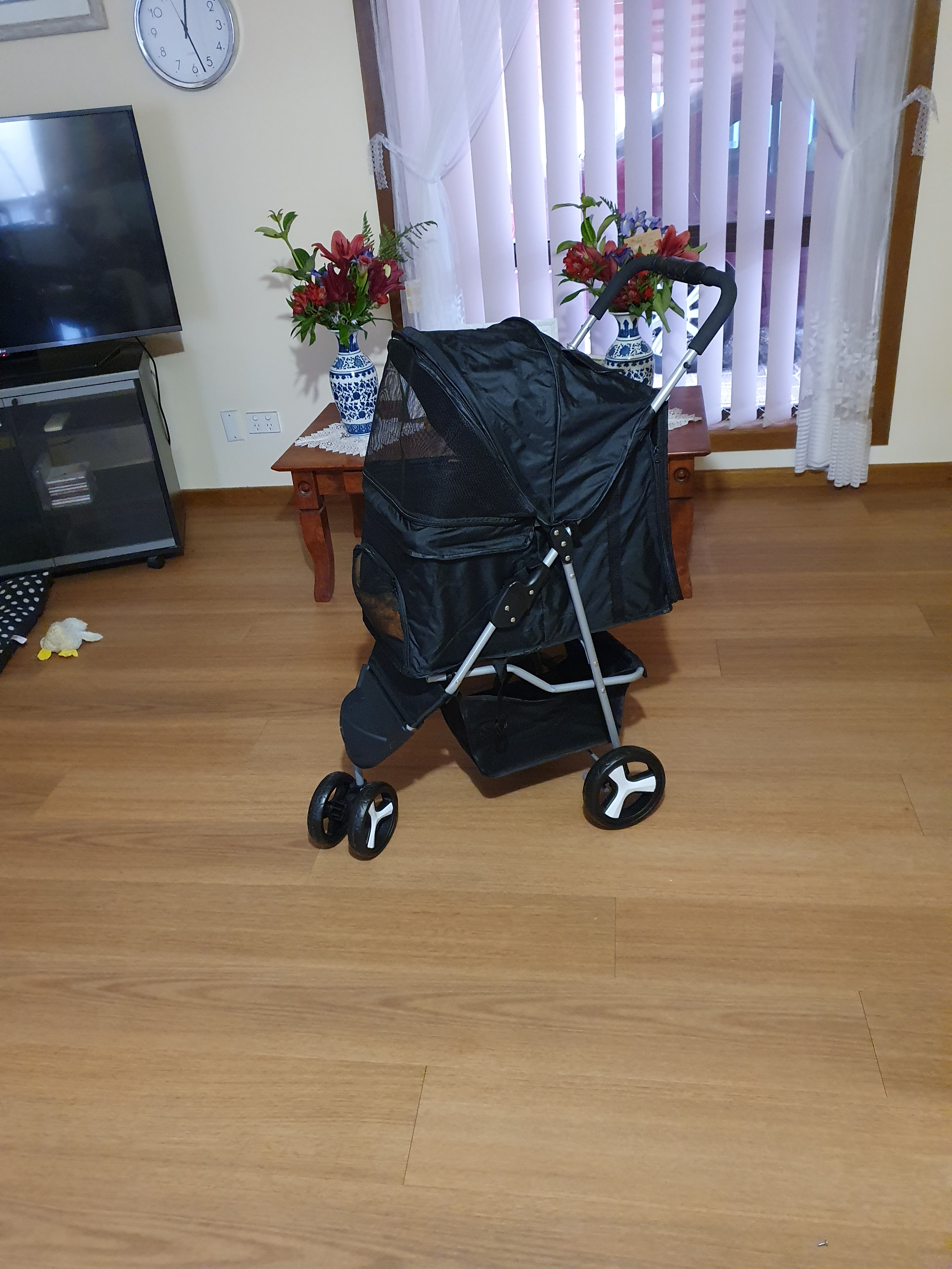 Presently he is in no serious pain but I have to go to Adelaide this weekend so I will get him booked in for day surgery as soon as I get back. I cannot do it before I go since Annabell would not be able to look after him, as would be required. And here was me thinking that a few days in the stroller and he would be as right as rain. Oh, I have ordered a new stroller/ walker since this one is doing him good and killing me :o) This one is way too low for me. Pushing it for any distance is really painful on the arms. I thought at first that it was mainly because it was many years since I pushed a pram, but it’s more than that – the lowness of the unit itself. So, the new stroller should arrive on Friday and that is 105cm at the rear – the pushing end. I think that will be a lot more comfortable; well for me. Benji just goes to sleep in the mornings. The new stroller is larger giving him more room to spread out and it is easier to set up and collapse
