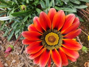 Looking out of the window, I can see Benji sunning himself on the “Moon Chair” and the pot plant flowers are looking quite colourful. Benji has been out a lot recently and any sun around and he’s in “his” chair. I have the garden swing – minus the canopy. The storm and the very high winds we had the other week caused the canopy to act as a sail and the wind during the night threw it up against the side of the garage and snapped the units that hold the canopy to the frame. Now I have a garden swing with no canopy. I will fix it this week sometime and attempt to make a new part to replace the broken part and get the canopy back in place. Not sure if I have the tools to do it but I’ll give it a try. A sure sign that Spring is almost upon us is the widespread growth of Gazanias. Some consider them a pest but I like them for their