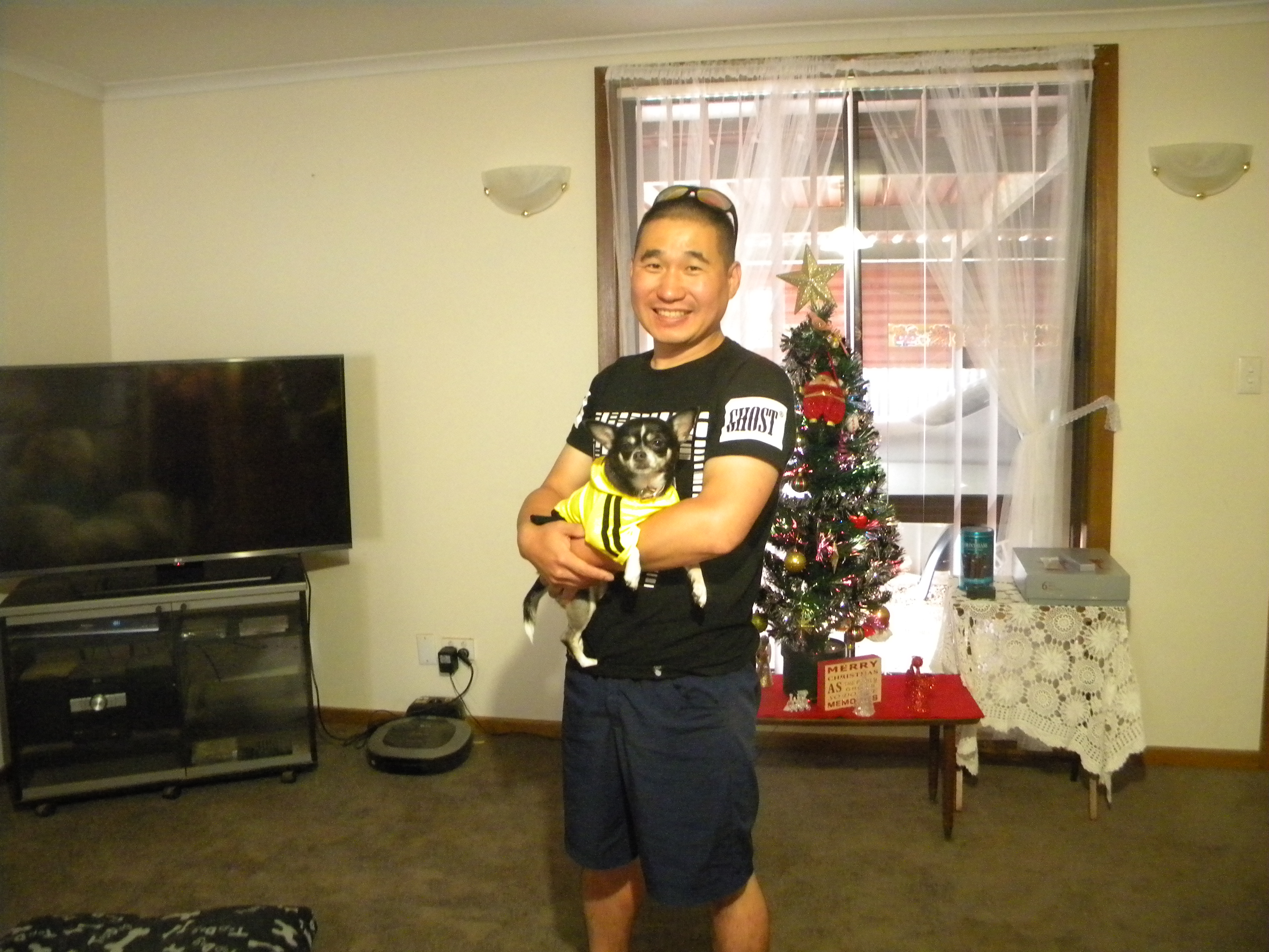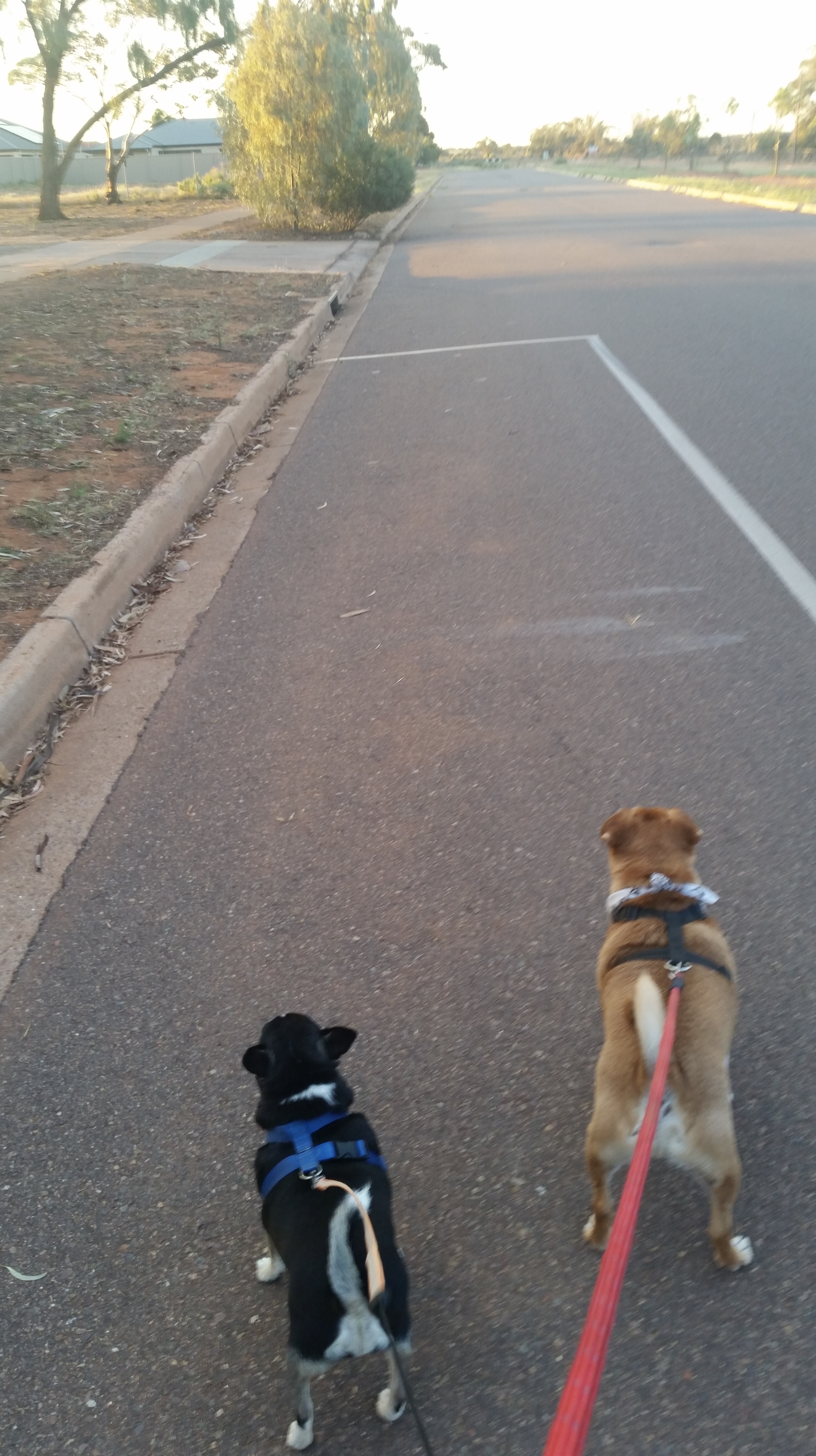 walking well. We went out at 6am this morning( Thursday 17th) and two thirds in the stroller and the last third walking and he has little blue and red lights on his collar, which I bought for him in Adelaide. Because of other things recently, although we have been walking, we have not been down to the wetlands. I will start taking him back there again after this weekend is over.